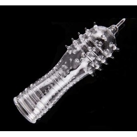 Với chất liệu silicon trong suốt, dày hơn giúp dương vật to hơn, dài hơn, giúp làm giảm độ tiếp xúc trực tiếp giữa đầu dương vật và âm đạo, hỗ trợ kéo dài quan hệ theo ý muốn mà không lo bị mất khoái cảm giữa chừng.